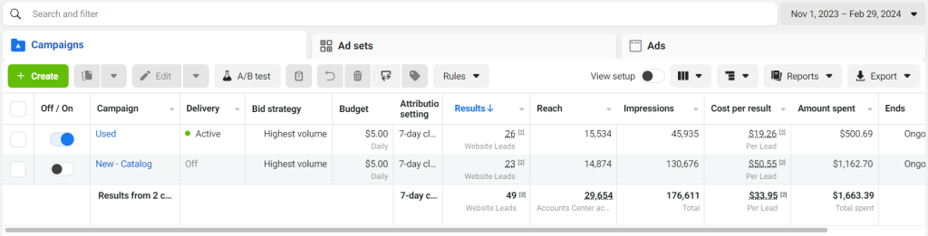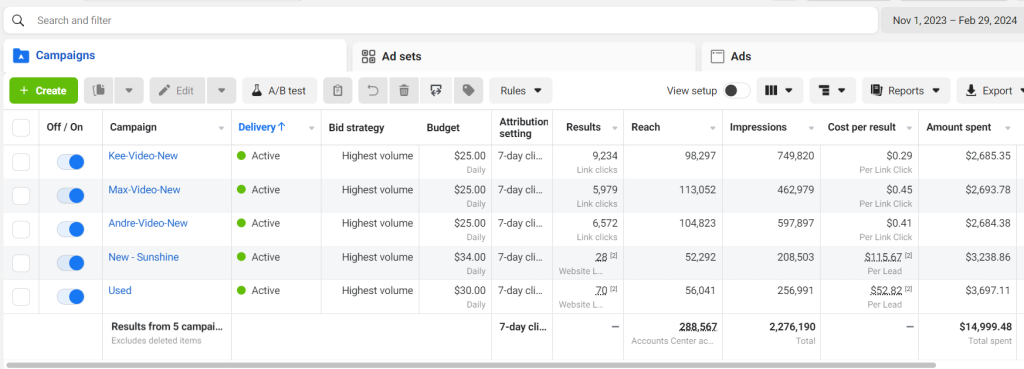 We managed this client’s Facebook ad campaign with success, obtaining: